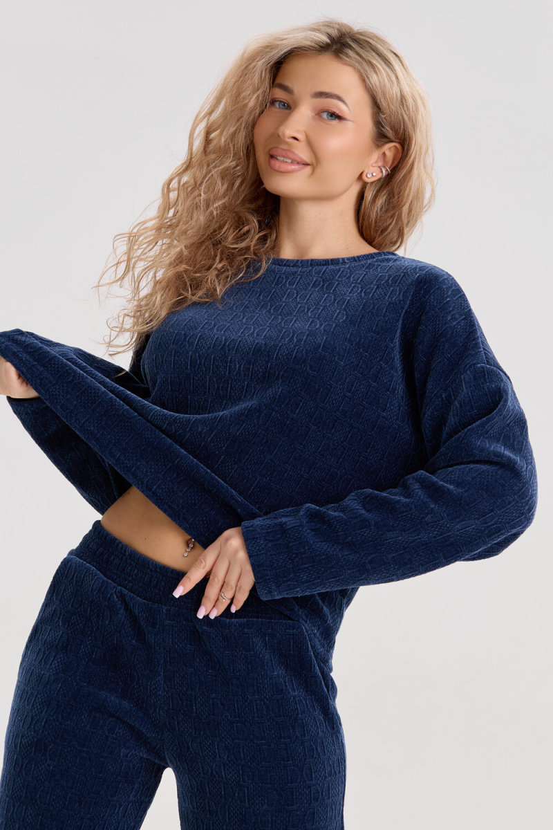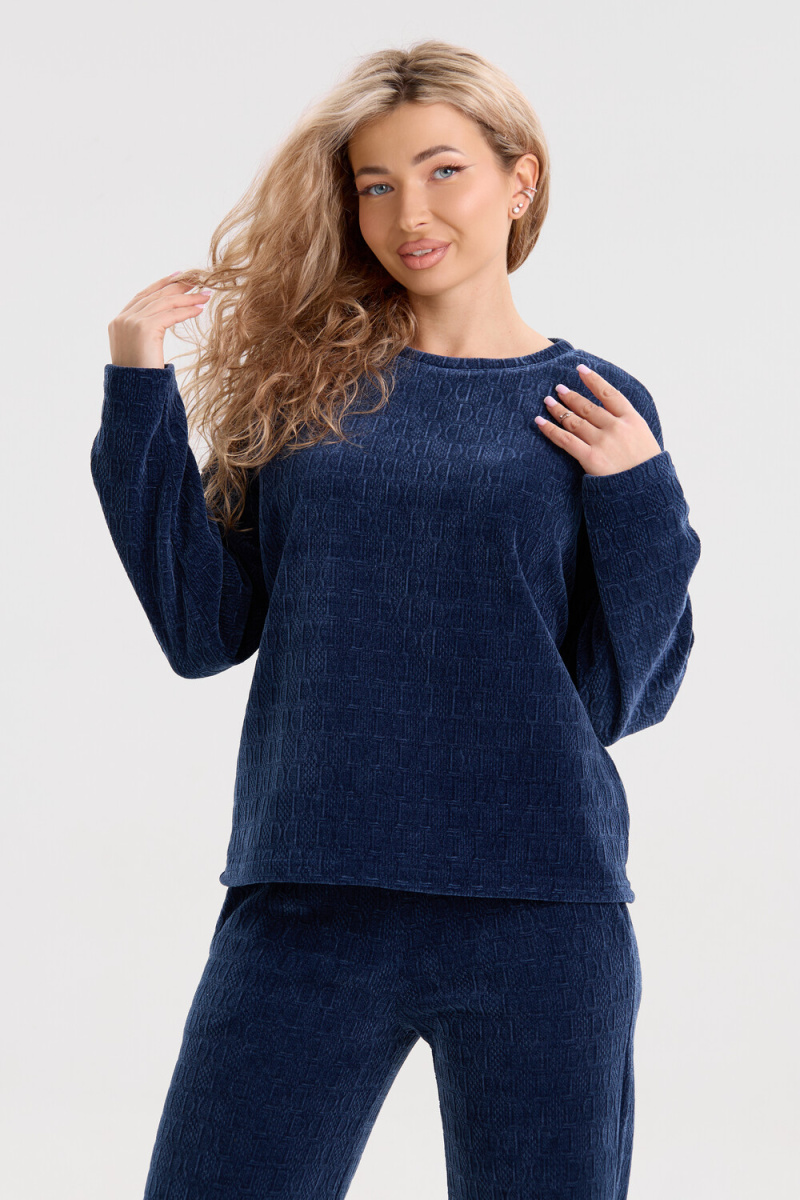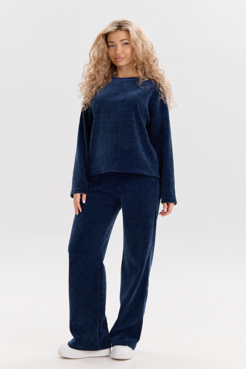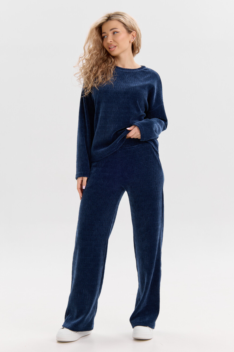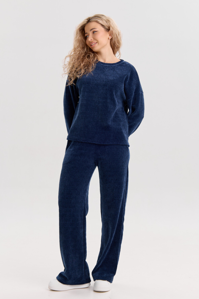 Женский костюм выполнен из жаккарда высокого качества. Жаккард - высокотехнологичный материал, прошедшей особую обработку. Ткань отличается высокими теплозащитными свойствами, при этом является дышащей. По своим характеристикам она не уступает шерстяным полотнам. И даже в сыром состоянии удерживает тепло у тела. Материал прочный, эластичный, влагостойкий. Воздухопроницаемая гигроскопичная ткань создает для тела комфортный микроклимат. Изделия из жаккарда легкие, не мнутся, не деформируются, не вытягиваються.В такой одежде удобно и комфортно. Эластичность материала позволяет легко двигаться. Костюм состоит из лонгслива и брюк. Лонг в стиле OVERSIZE ( одежда свободного кроя ) - это свобода самовыражения, позволяющая чувствовать себя комфортно и стильно одновременно. Горловина свитшота выполнена с обтачкой. Линия плеча спущена, длинный рукав. Женские стильные брюки - трубы представлены с вместительными боковыми карманами. Пояс выполнен на специализированной круговой поясной машине, что делает швы ровными и каче